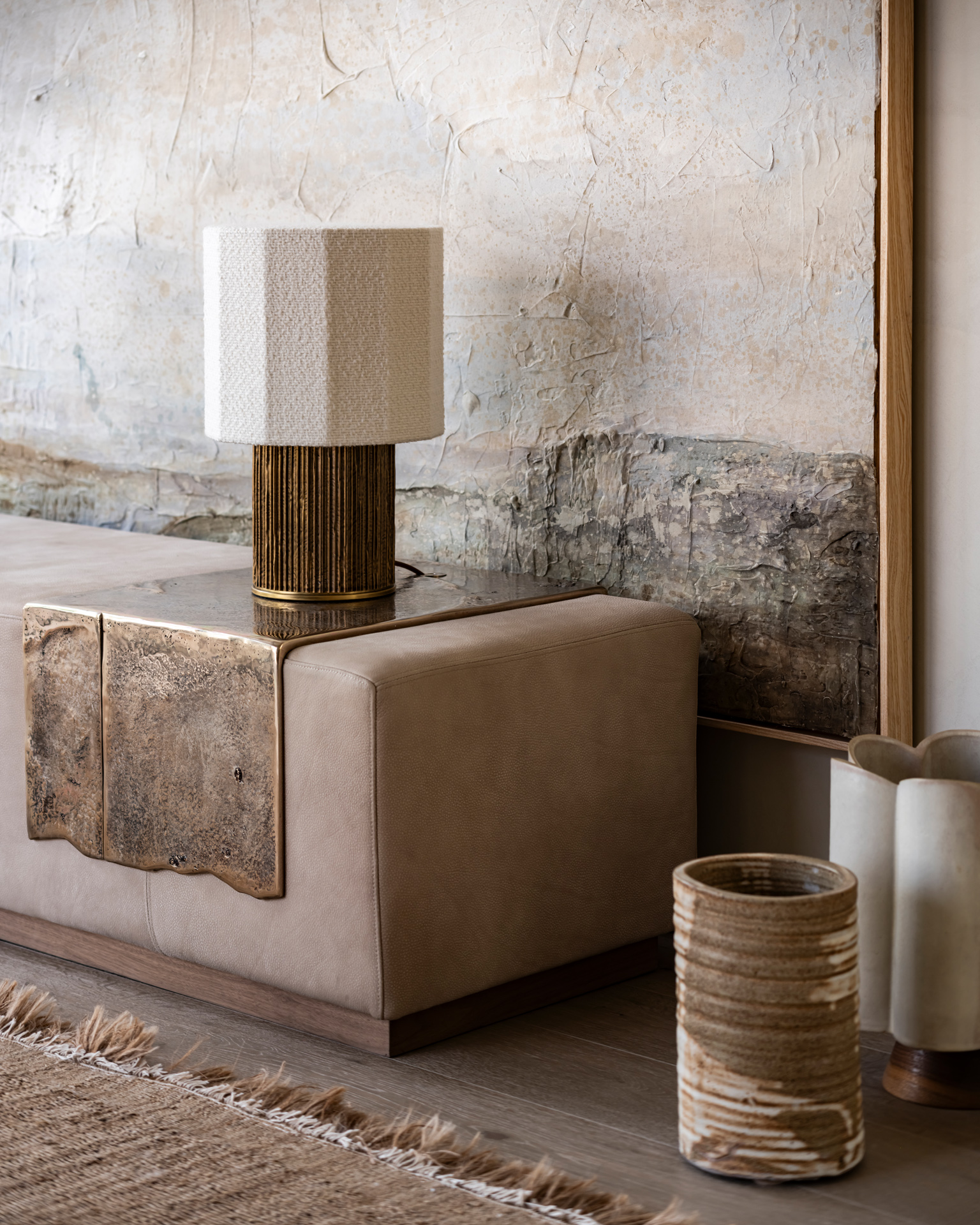 Introducing the Cuff Series, a family of studio-crafted pieces shaped by cast bronze, soft upholstery, and disciplined geometry. Each design pairs a sculptural bronze “cuff” with a quiet, material honesty, warmth, and utility into the same conversation.
